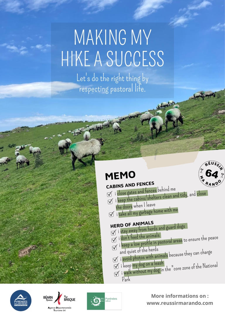 From Béarn to the Basque country, the Pyrenees are the perfect backdrop for long walks with family or friends. All the more reason to discover that, behind the picture-postcard landscapes, lies an authentic pastoral life that must be left undisturbed. For generations, herds, shepherds and their dogs have lived here, in perfect harmony with the mountains they are committed to protecting. It's up to us hikers to help them too!