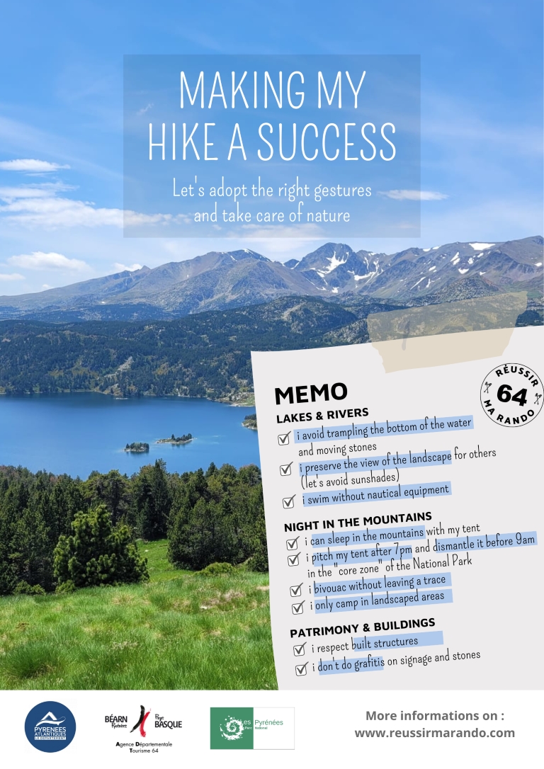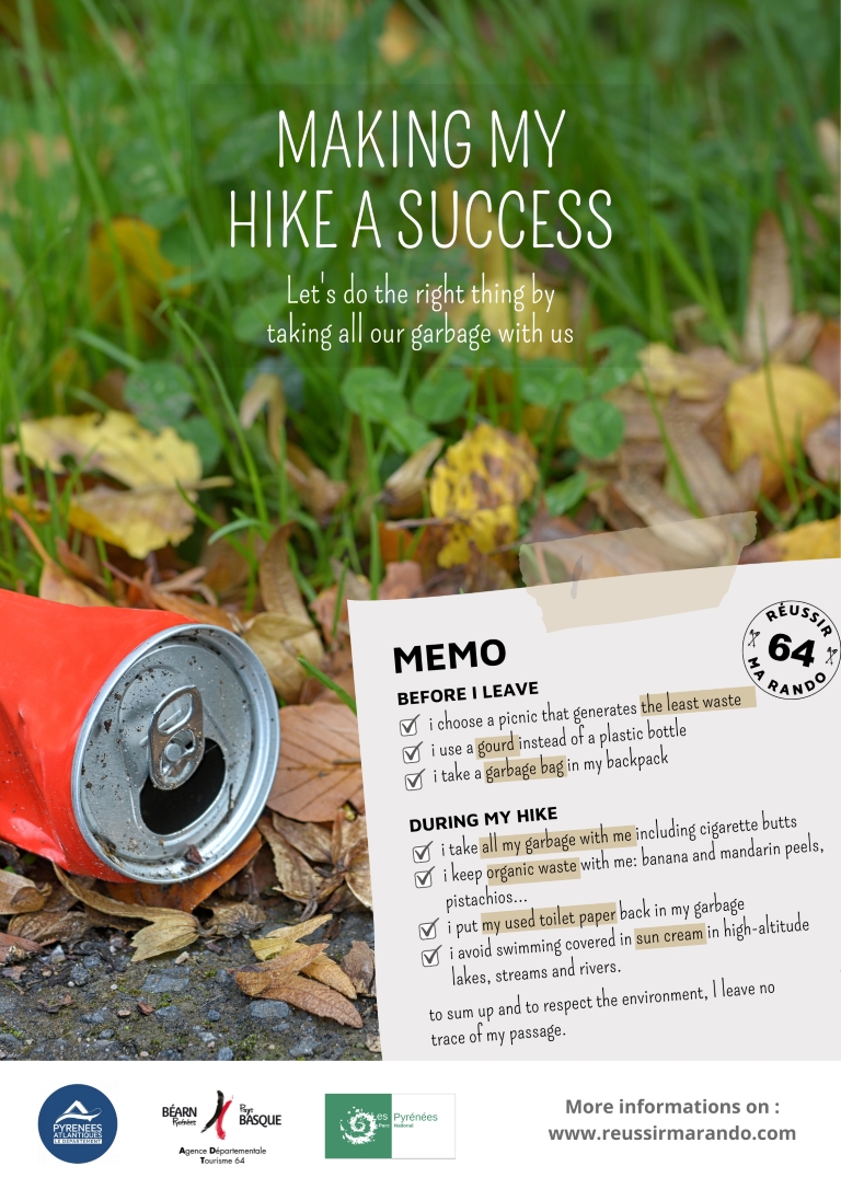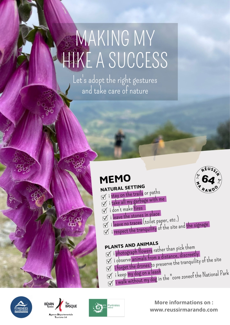 From a stroll of a few hours to a full-day hike - or a bivouac for the most passionate - an excursion always needs to be well prepared and organized.In the massifs of the Pays Basque and Béarn regions, as elsewhere, hikers need to respect a few simple safety rules. The terrain, nature and weather can hold many surprises. So it's a good idea to anticipate any difficulties before you set off.