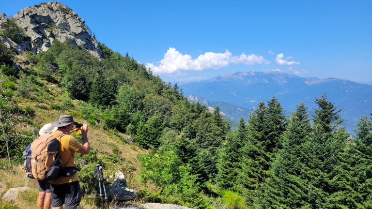 The mountain that is fully representative and symbolic of the Eastern Pyrenees, the very symbol of the Catalans, is the Massif du Canigou. This summit dominates the Roussillon plains and the Mediterranean coastline. The position of the summit is isolated from the rest of the Pyrenean chain, so it stands out and is easy to spot, omnipresent in the landscape. It is nicknamed the Fujiyama Catalan. These protected areas that you walk through are a special environment and for nature lovers there is rich flora and fauna to admire. From Vernet-les-Bains, depending on the weather and your motivation, you have the choice of going around the Canigou summit, or going up and over! Then, you will drop down to the Roman spa town Arles sur Tech. From here, the GR10 gets close to the French/Spanish border, after having passed the Roc de France and the famous Col du Perthus, you will drop down into a vegetation of Mediteranean garrigue. The last mountain foothills of the Massif des Albères give way to the sea. You can't help but be charmed as you approach the enticing blue coastline. The sandy beach of Banyuls, one of the prettiest spots along the Vermeille coastline is not far off !