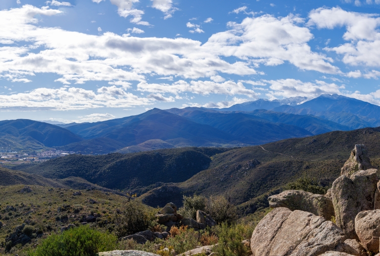 This stage is the transitional point of the Pyrenean crossing as the GR10 approaches the Alberes massif and joins the Franco-Spanish frontier up to the col du Perthus. Its twin the GR11, takes on the same itinerary on the Spanish side. The Alberes is the last Pyrenean massif before diving into the deep blue sea. Crossing it is a real pleasure given the diversity of the landscapes.