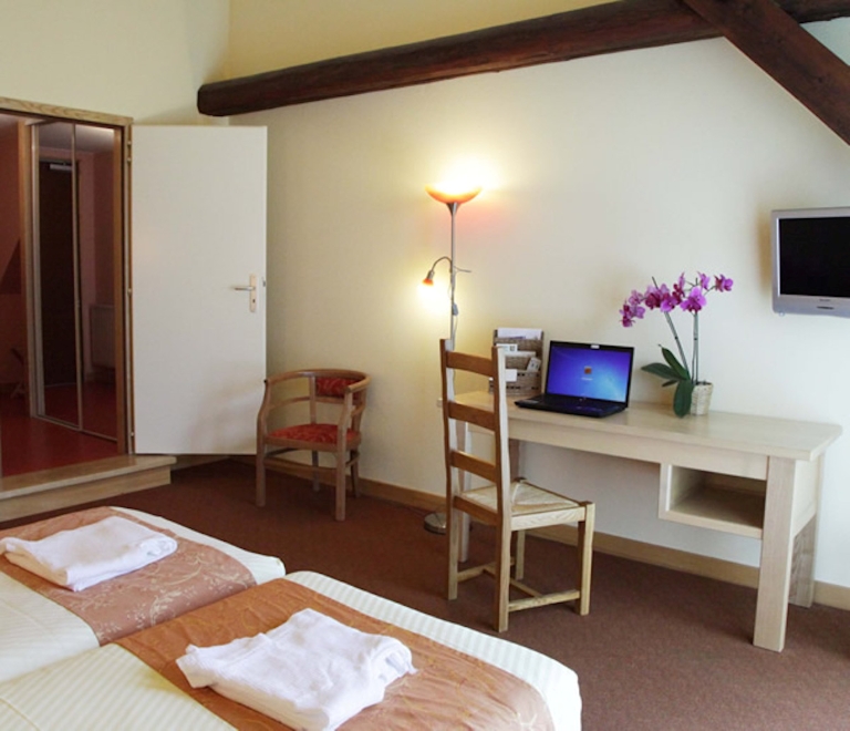 Hôtel*** de charme et classé « Logis et maître restaurateur », situé dans un village Vosgien, en chambre double, avec douche et WC. Vous pourrez profiter librement de la piscine couverte et chauffée, de l'espace forme, du sauna et du SPA.