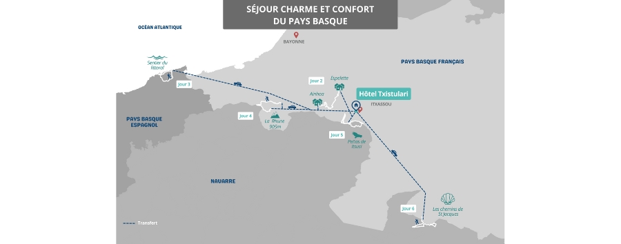 Ce circuit est l'occasion de partir à la rencontre d'une identité culturelle exceptionnelle en cheminant à la fois le long des falaises littorales, entre Hendaye et l'Espagne, mais également de villages en villages, de crêtes et de forêts…
