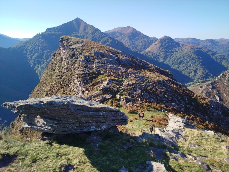 Accompagnés des vautours survolant le secteur, vous traverserez tantôt la forêt de hêtres, tantôt cheminerez en crêtes avec des panoramas superbes sur les vallées de Baigorry et Saint Jean Pied de Port, sur les sommets plus imposants du Béarn.