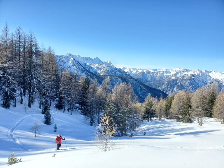 Cet itinéraire vous fait découvrir les deux massifs du Parc naturel régional du Queyras : l'Est, à la frontière italienne, réputé pour ses hameaux pittoresques et ses cols d'altitude, et l'Ouest, où les chalets d'alpages offrent des panoramas hivernaux exceptionnels.