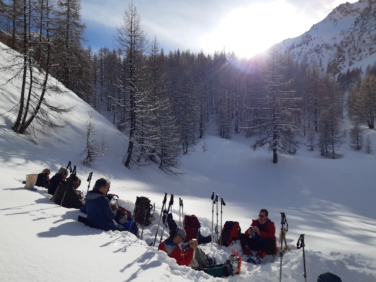 Randonnée encadrée par un BE Accompagnateur montagne spécialiste de la région et expert du terrain enneigé.