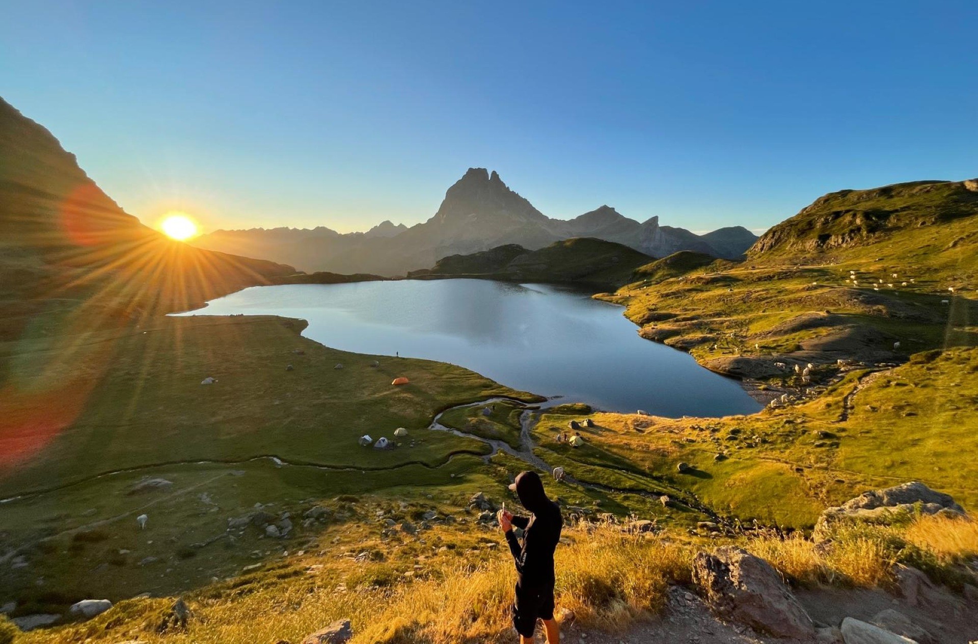 the Pic du Midi d’Ossau, whose reflection shimmers