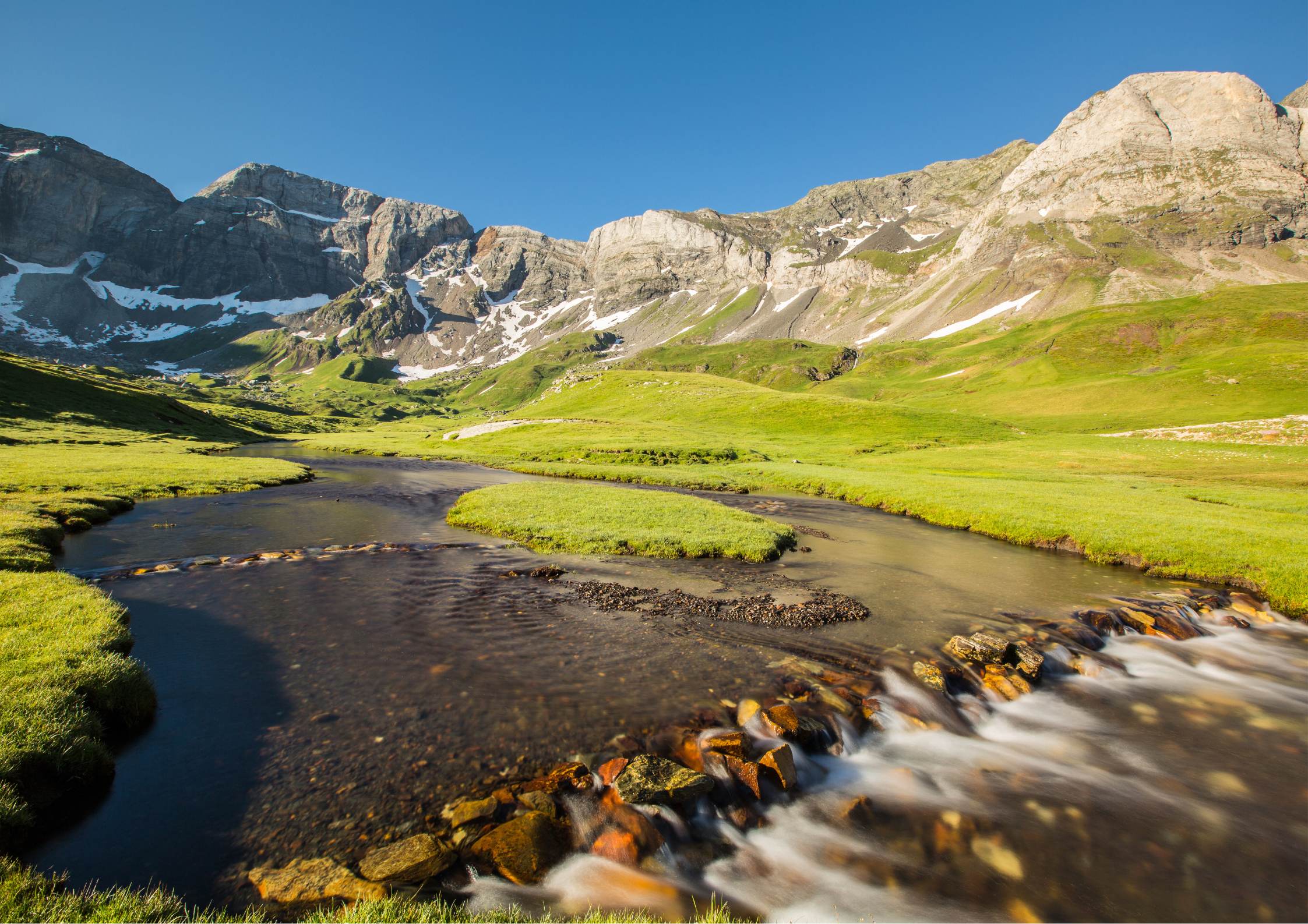 At the start of your stay, you will discover two magnificent valleys: the Gaube Valley and the impressive north face of the Vignemale, and the Marcadau Valley with its high mountain lakes. Then, after crossing into the Luz valley in the Pays Toy, the Estaubé and Gavarnie cirques will offer hikers eager for thrills panoramic views of unparalleled purity. Throughout your journey, izards, marmots and other birds of prey will accompany you with their gaze in the silence of these vast, unspoilt spaces.