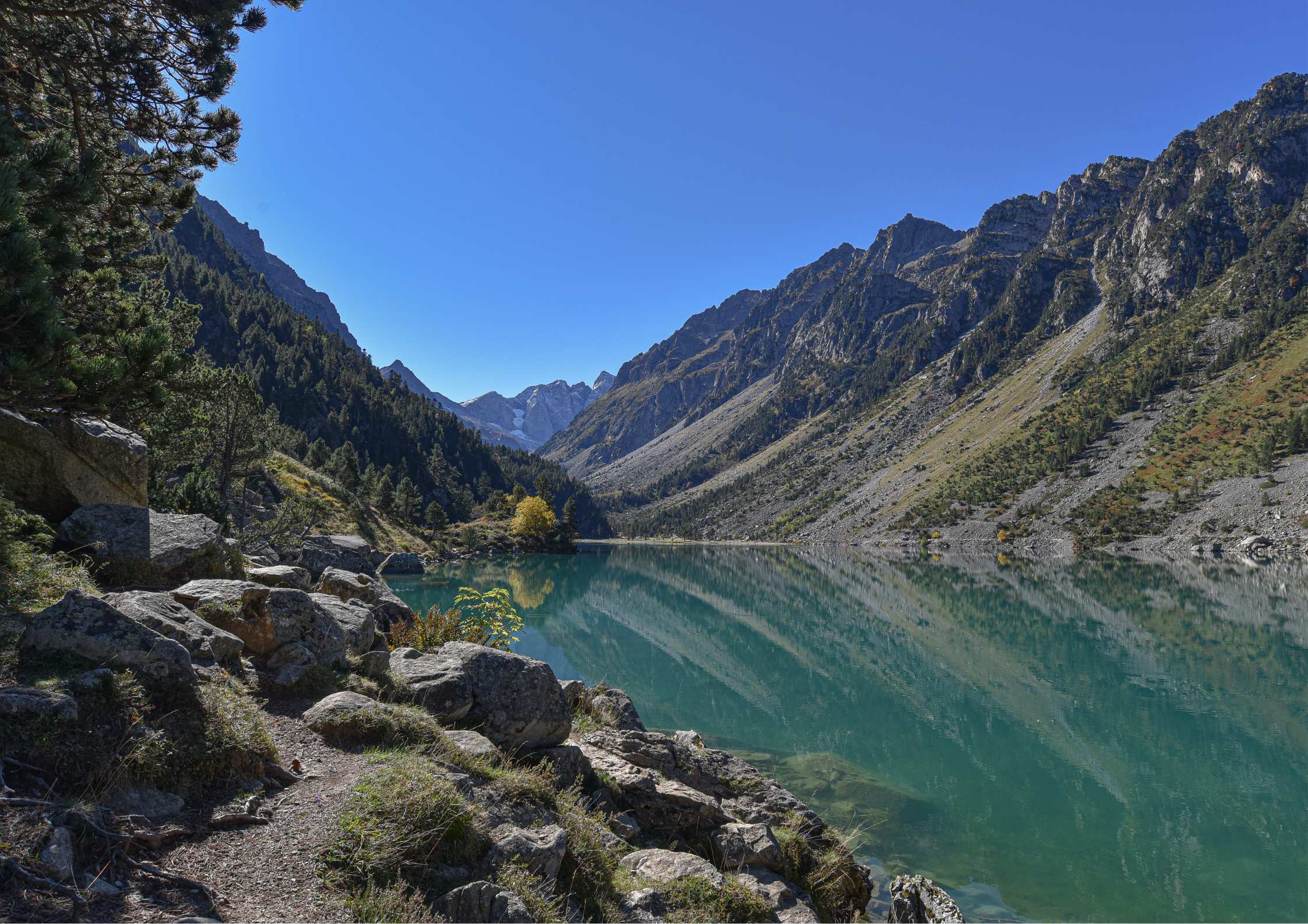 Discover the sumptuous Gaube Valley and its mountain lake nestled in the heart of pristine landscapes. After Lake Gaube, an easy, gently sloping route will take you to the Oulettes de Gaube site with its guarded refuge, at the foot of the imposing and magnificent north face of the Vignemale (3,298m).