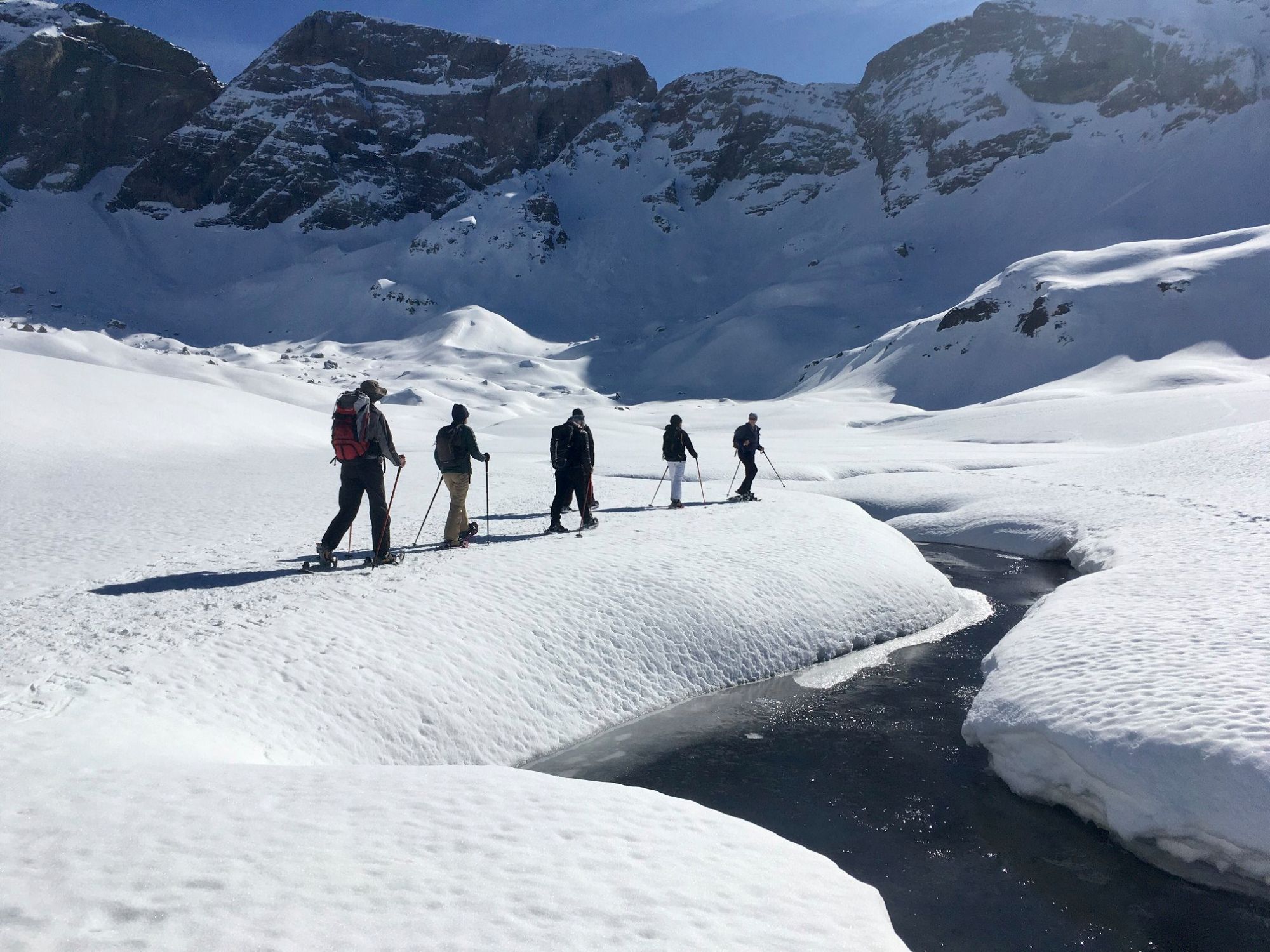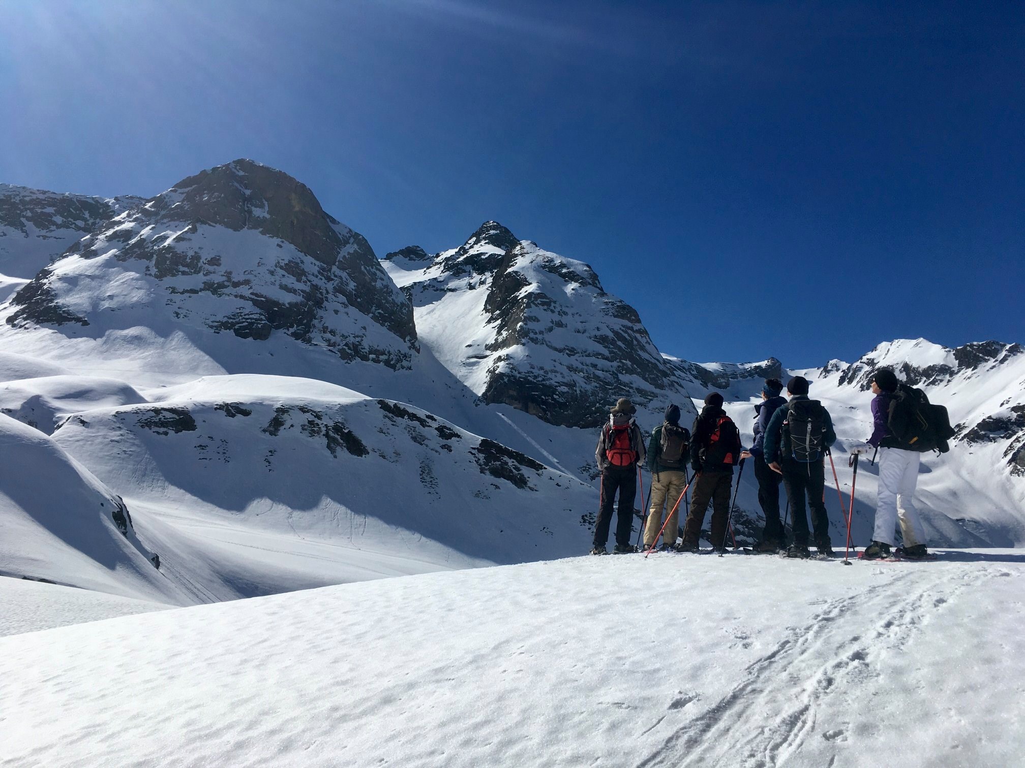 - Equipment provided: snowshoes, walking poles, avalanche transceiver and hiking crampons