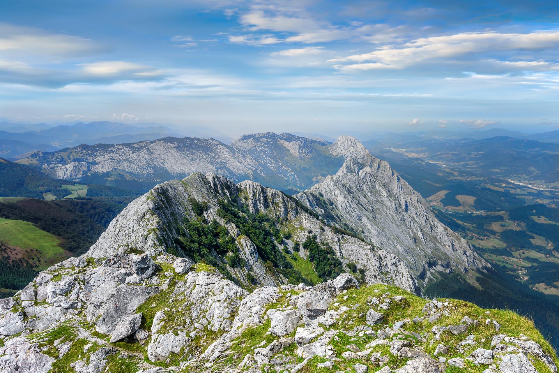 Le Pays basque espagnol est surtout connu pour ses côtes et son océan mais son arrière-pays recèle des massifs montagneux calcaires formant naturellement des remparts : les sierras. Depuis celles-ci, les panoramas sont beaux et lointains.
