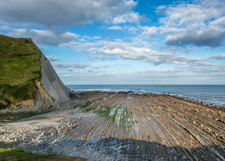 L’étape du jour vous permettra de découvrir l’une des zones les plus belles et les plus intéressantes de toute la Côte Basque, en pénétrant dans la zone récemment déclarée biotope littoral de Deba-Zumaia. L’itinéraire vous permet de parcourir en quelques heures une succession ininterrompue de strates qui, couche après couche, représentent plus de 50 millions d’années de l’histoire de la planète. C’est l’un des sanctuaires géologiques les plus importants du monde.