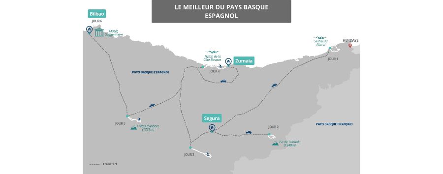 Chaque jour, nous irons marcher sur un de ces massifs, et les grands noms de la montagne basque comme Anboto, Jaizkibel, Aizkorri et Txindoki, n'auront plus de secrets pour vous. La couleur prépondérante est le vert, elle rend les paysages vivants et magnifiques.