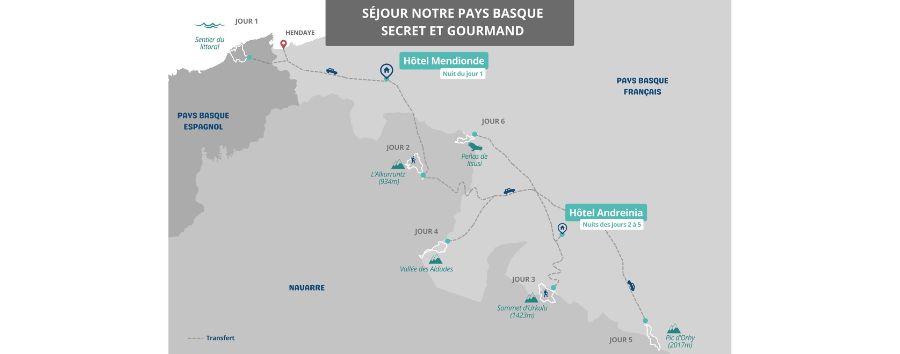 " Sur ce séjour du Pays Basque secret, l’émerveillement est au rendez-vous à chaque pas. Sortie des sentiers battus, la nature se dévoile, généreuse et sauvage, offrant des panoramas à couper le souffle. Une invitation à l’aventure, où chaque chemin cache des merveilles insoupçonnées. "Notre Pays Basque secret et gourmand, de l’Océan aux premiers 2000 du 10/08/2025 au 15/08/2025