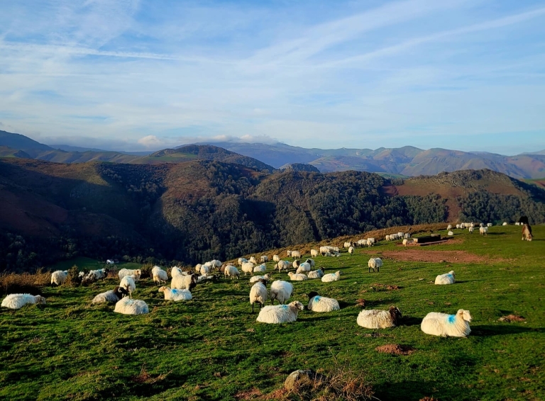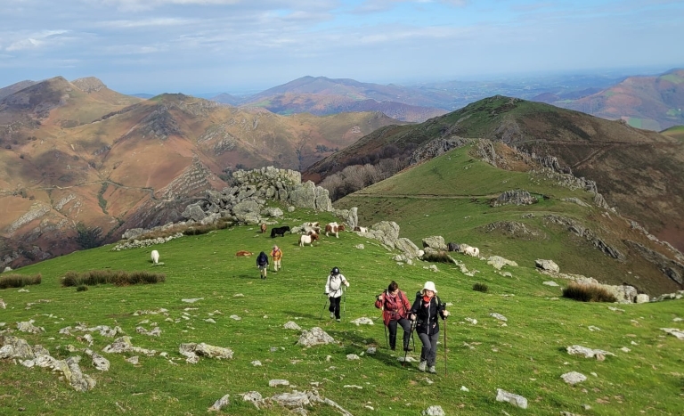 Accompagnés des vautours survolant le secteur, vous traverserez tantôt la forêt de hêtres, tantôt cheminerez en crêtes avec des panoramas superbes sur les vallées de Baigorry et Saint Jean Pied de Port, sur les sommets plus imposants du Béarn.