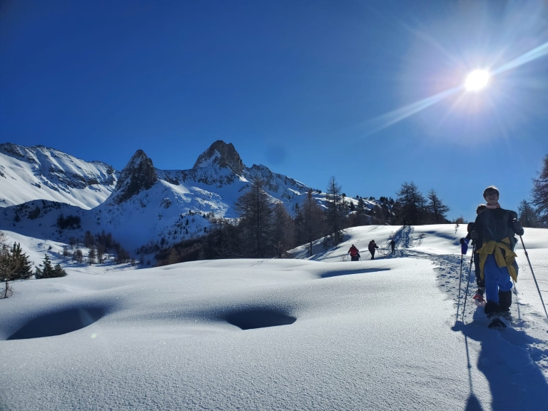 Randonnée encadrée par un BE Accompagnateur montagne spécialiste de la région et expert du terrain enneigé.